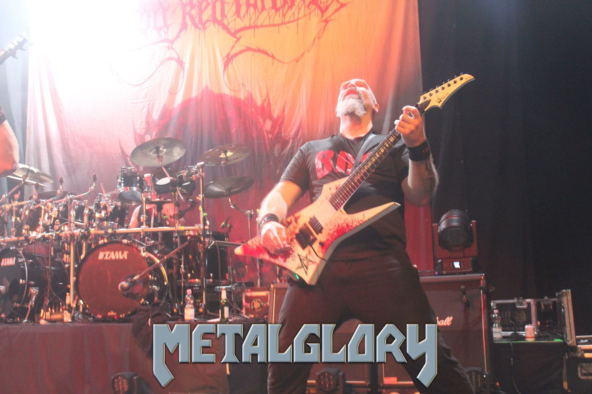 Bereits BLOOD RED THRONE zeigten mit ihrem brachialen technisch-versierten Death-Grind, dass sie seit einigen Tagen auf Tour zusammengewachsen sind und die Tracks durchaus funktionieren. Spielfreude und Begeisterung waren sichtlich vorhanden, was die Fans gern annahmen und auch hier schon mit einem Circle Pit als auch „Ausflippattacken“ vor der Bühne honorierten. Dazu eben ein heftiger Sound, der durchaus dafür gesorgt hat, dass in der großen Halle das Publikum viel Platz hatte um sich auszutoben, während des halbstündigen Auftritts.