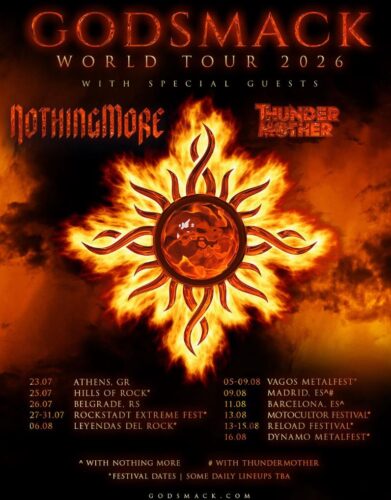 Godsmack added new added headline dates in Athens, Belgrade, Madrid and Barcelona with special guests NOTHING MORE and Thundermother