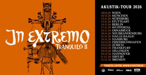 Nun ist es endlich so weit. Mit „Tranquilo II“ gehen In Extremo erneut auf Akustik-Tour. Sechzehn Jahre nach dem ersten Kapitel ist viel passiert. Neue Alben sind erschienen, zahlreiche Songs haben ihren Weg ins Repertoire gefunden, und viele davon schreien geradezu danach, einmal in einem neuen, akustischen Gewand zum Leben erweckt zu werden.