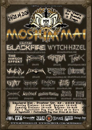 news. Mosh im Mai 2026 im Kiel am 24. und 25. April mit u.a. Wytch Hazel, Endseeker, Final Cry, Deimos Dawn, Frank Blackfire…