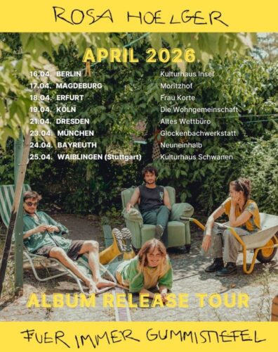 Das Album mit weiteren Highlights (u.a. Features mit Dota Kehr und Tobias Dellit) ist bereits auf allen Plattformen erhältlich. Im April bringt Rosa Hoelger diese besondere Energie endlich live auf die Bühne: