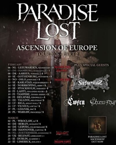 The „ASCENSION OF EUROPE“ tour part 2 will take place in February & March 2026, and several shows are already sold out and more venues report very low stocks of tickets. We strongly recommend to purchase tickets in advance.