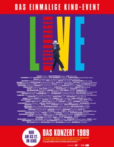 Informationen zu allen teilnehmenden Spielstätten und Tickets für das Kino-Event „WESTERNHAGEN – LIVE (1989)“ sind ab sofort unter https://filmweltverleih.paxpage.com/westernhagen erhältlich und werden fortlaufend aktualisiert, sodass weitere Kinos hinzukommen können – ein regelmäßiger Check wird empfohlen.