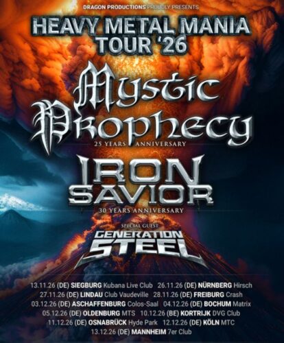 news. Heavy Metal Mania Tour 2026 mit MYSTIC PROPHECY, IRON SAVIOR & GENERATION STEEL